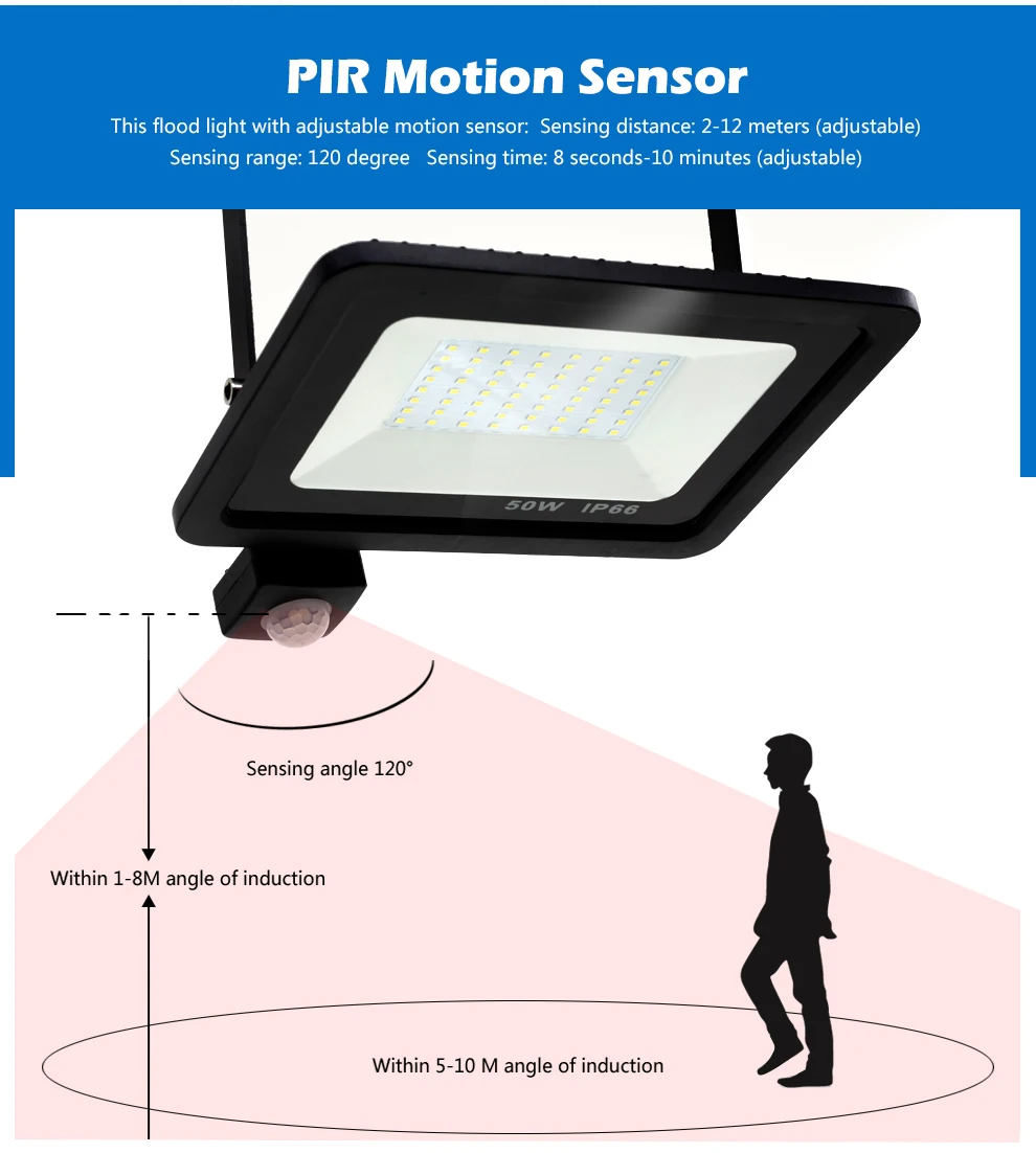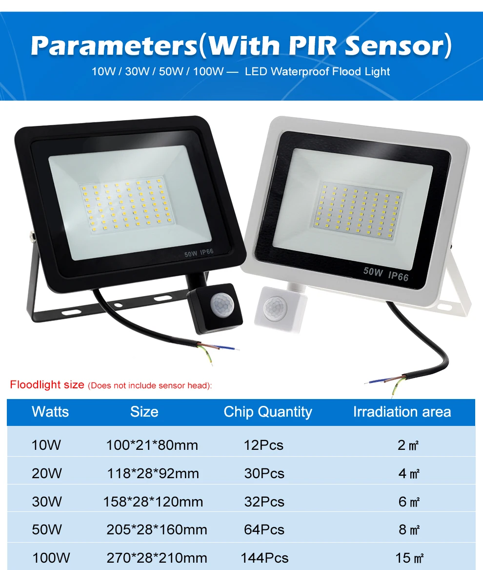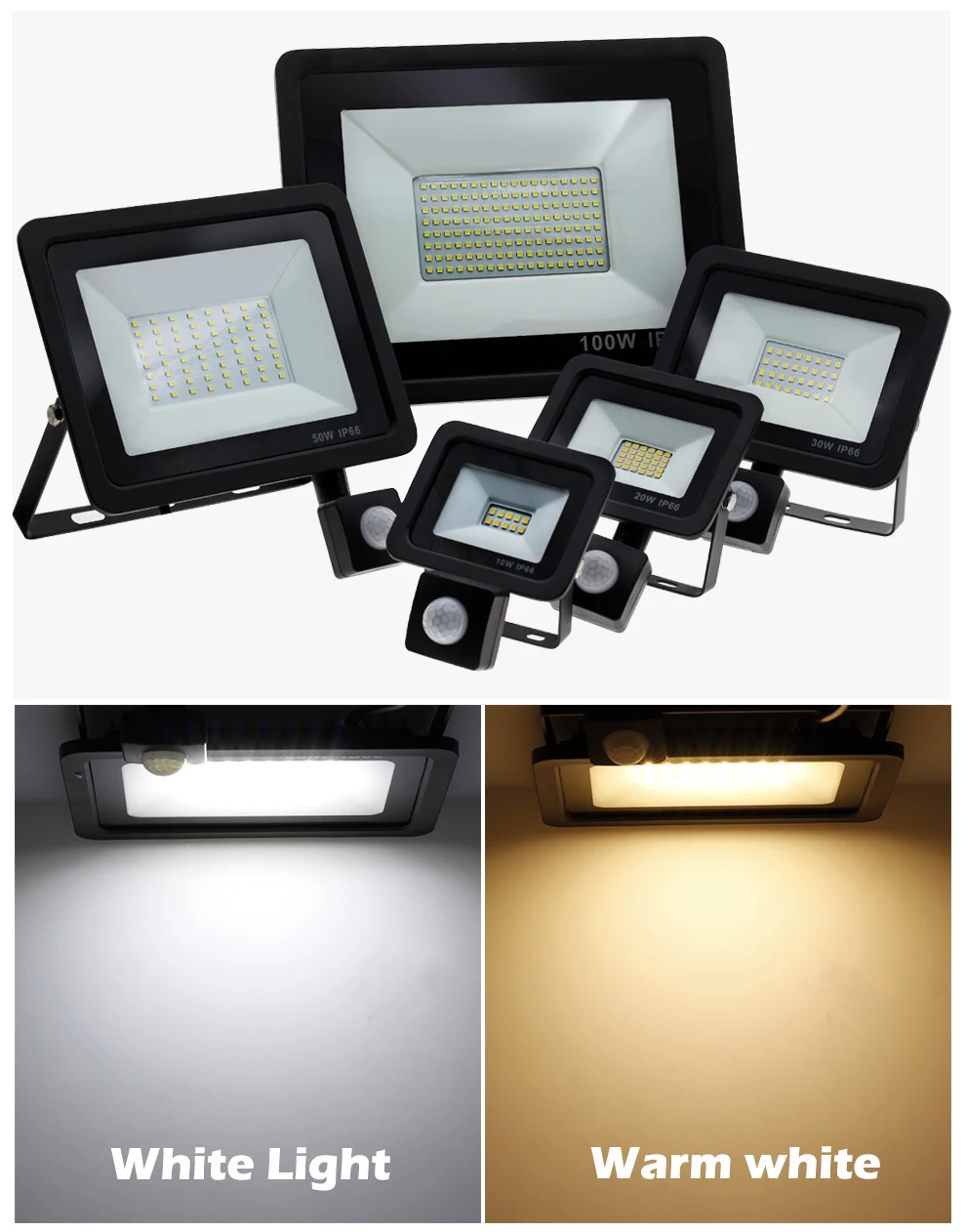 PIR Motion Sensor LED Floodlight 220V Waterproof Spotlight 10W 30W 50W 100W Flood Light Outdoor Lighting for Garden Street Wall